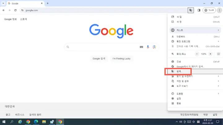 3. 여기서 "한국어로 번역"이라는 메뉴를 찾을 수 있어요. "한국어로 번역"을 클릭합니다.